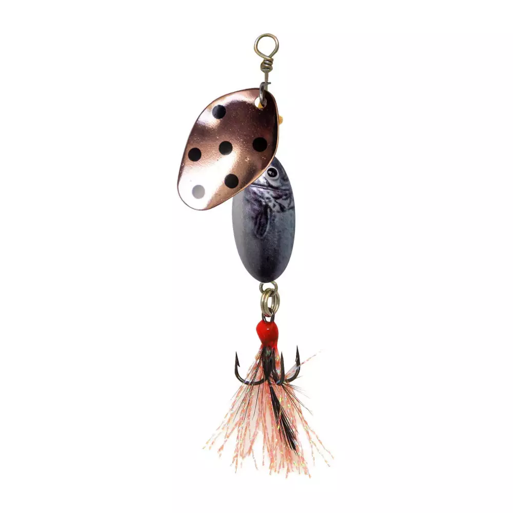 Lippalehti pyörii herkästi myös hitaassa kelauksessa, mikä tekee vieheestä toimivan vaihtoehdon vaihteleviin olosuhteisiin. Mustilla pilkuilla viimeistelty lehti tuo lisänäkyvyyttä ja houkuttelee petokaloja iskuun. Lyijytön ja muoviton rakenne tekee vieheestä hyvän valinnan myös ympäristöä ajatellen.