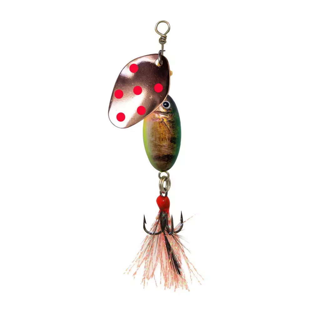 Lippalehti pyörii herkästi myös hitaassa kelauksessa, mikä tekee vieheestä toimivan vaihtoehdon vaihteleviin olosuhteisiin. Punaisilla pilkuilla viimeistelty lehti tuo lisänäkyvyyttä ja houkuttelee petokaloja iskuun. Lyijytön ja muoviton rakenne tekee vieheestä hyvän valinnan myös ympäristöä ajatellen.