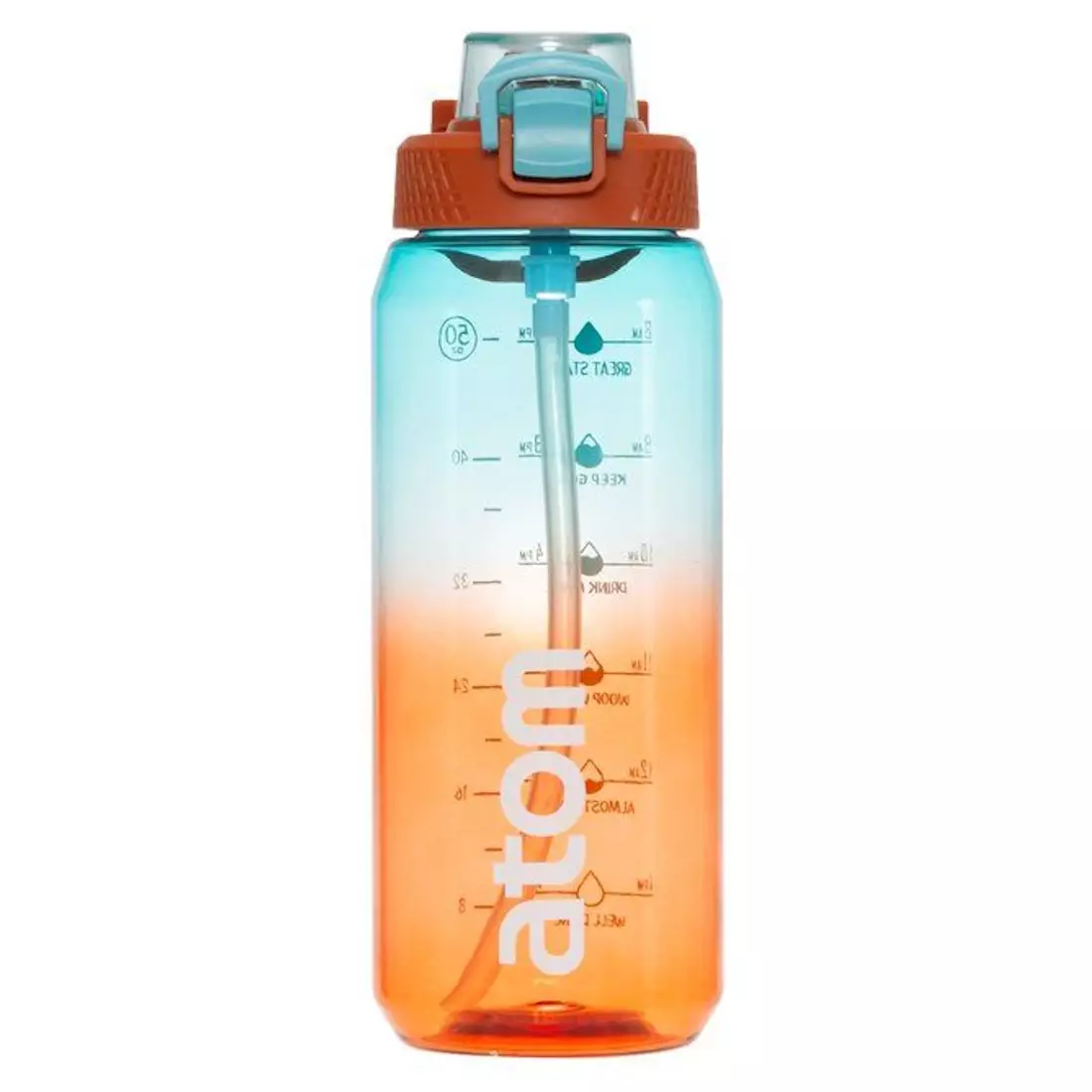 Liukuvärjätty muovinen juomapullo. Pullossa kannustava mitta-asteikko. Erinomainen niin koti- , toimisto- , retki- kuin salikäyttöön. Juomapullossa on pilli. Vetoisuus 1700 ml. Käsinpesu.