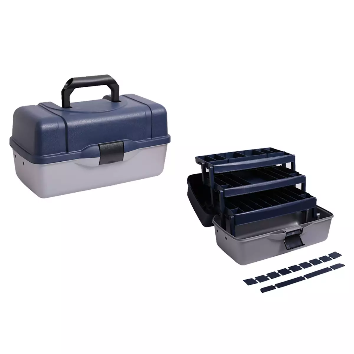 Kestävästä muovista valmistettu 3 osainen kalapakki. Tässä säilöt isommankin määrän erilaisia vieheitä, lippoja ja vaappuja. Siirrettävät väliseinät helpottavat järjestelyä.