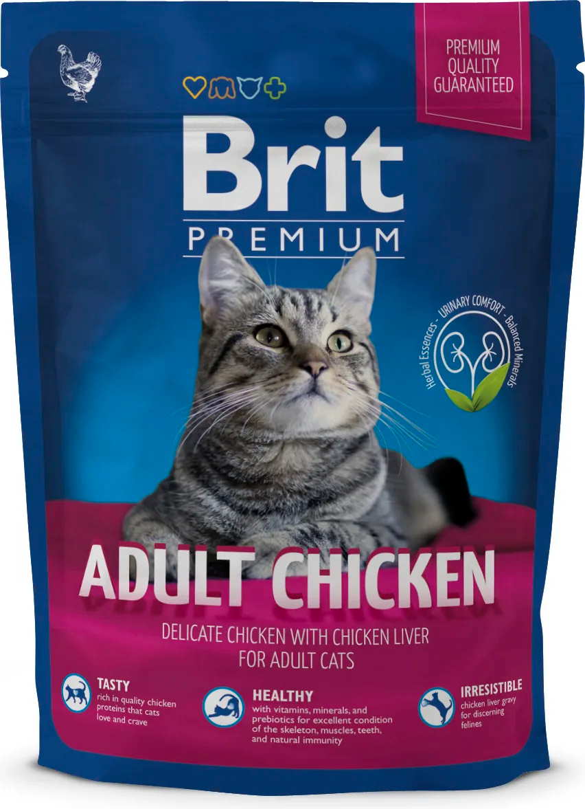 Eläinkaupoista tuttu Brit Premium esittelee: Herkullista kanaa ja kananmaksaa sisältävä ravinto aikuisille kissoille. Sisältää runsaasti proteiineja kissojen himoitsemasta laadukkaasta kanasta. Lisänä herkullista lohikastiketta, joka houkuttelee nirsoimmatkin kissavintiöt ruokakupin äärelle. Tarkoin kehitetty resepti sisältää vitamiineja, kivennäisaineita ja prebiootteja, jotka edistävät luuston, lihasten, hampaiden ja luontaisen vastustuskyvyn tervettä kehitystä. Ruokaan on lisätty myös yrttejä virtsateiden hyvinvointiin.