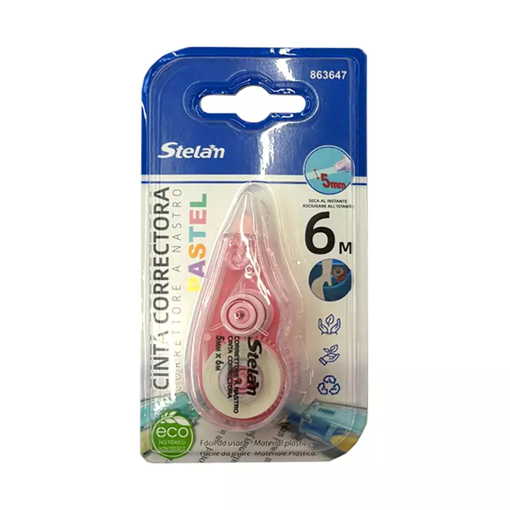 Korjausteippi on tarkoitettu siistiin ja nopeaan korjaukseen kirjoitus ja toimistotöissä. Teippi peittää virheet tasaisesti ja mahdollistaa uuden tekstin kirjoittamisen heti päälle. Kapea 5 mm leveys sopii tarkkoihin korjauksiin esimerkiksi riveillä ja yksittäisissä merkeissä. Käyttö on helppoa ja teippi rullautuu sujuvasti paperille ilman kuivumisaikaa. Kompakti koko tekee korjausteipistä kätevän penaaliin, reppuun tai työpöydälle.