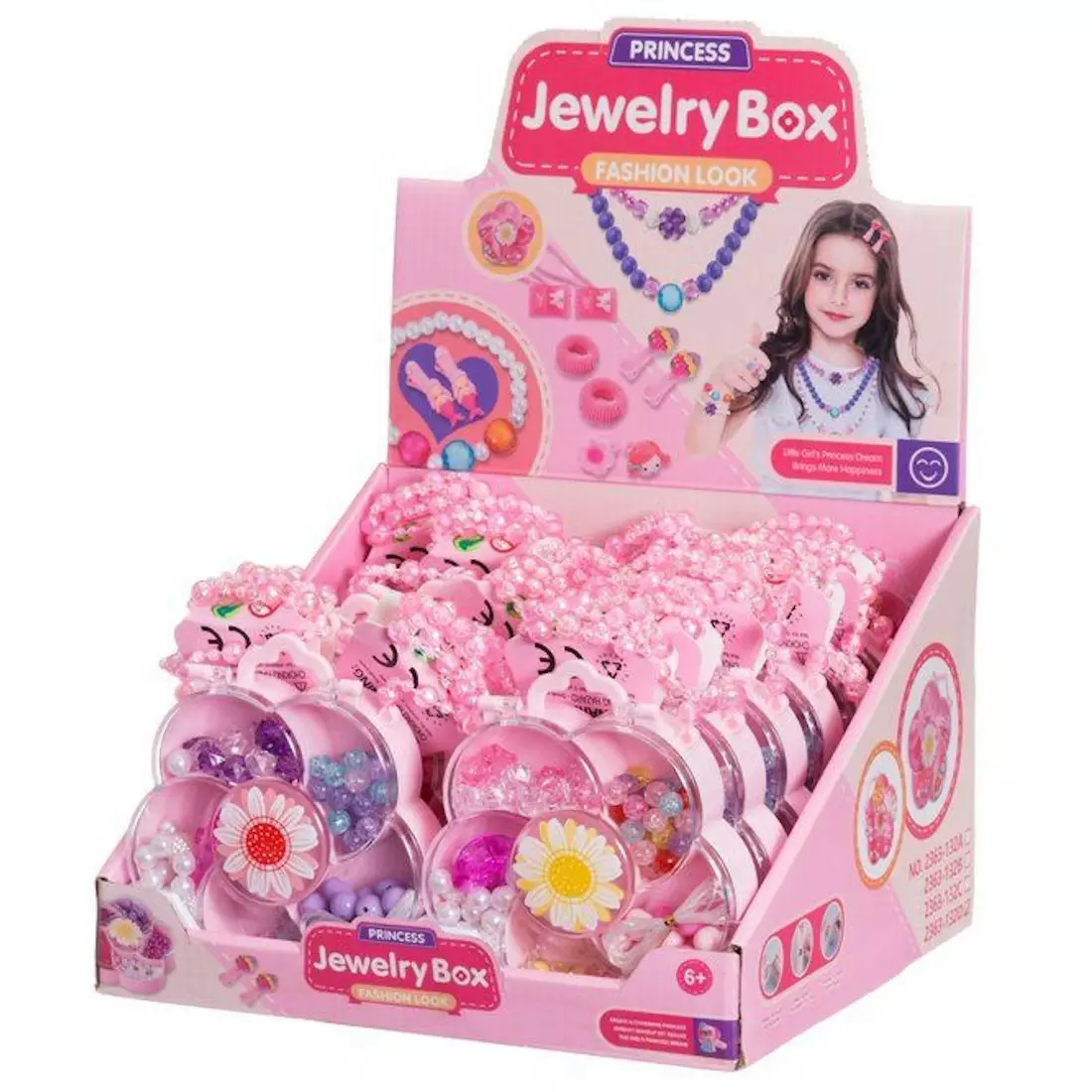 Leikkisetti sisältää kauniita erilaisia muovihelmiä ja narua, joista voi askarrella ihania rannekoruja. Helmet on pakattu suloiseen kukanmuotoiseen rasiaan.