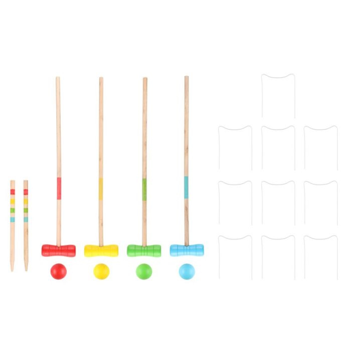 Krokettipeli on viihdyttävä ja jännittävä koko perheen seurapeli. Sitä pelataan moninpelinä, yleisimmin neljällä pelaajalla. Ensimmäisenä radalla olevat portit oikeassa järjestyksessä kulkenut ja lopetuskeppiin osunut voittaa! Pakkaus sisältää 4 puista mailaa (varren pituus 76,5 cm), 4 palloa (halkaisija 75 mm), 10 porttia ja aloitus- ja lopetuskepit. Sisältää verkkopussin pelivälineiden säilyttämiseen.