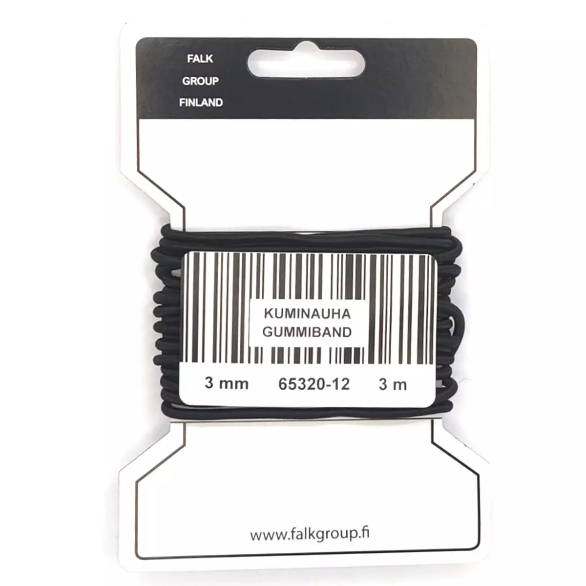 Laadukas ja joustava pyöreä 3 mm kuminauha. Nauha on jämäkkää joten se soveltuu hyvin esim. ulkovaatteissa hupun-, helmankiristykseen. Väri musta. Pituus 3 m.