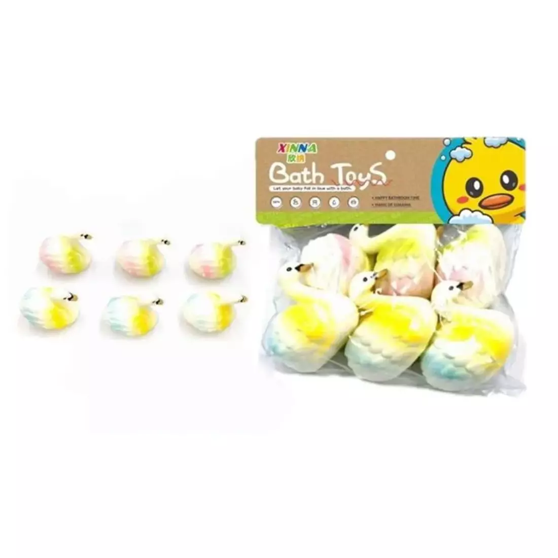Ihastuttavat joutsenet tekevät kylpyhetkestä entistäkin hauskemman ja kauniimman. Pehmeät ja kevyet kylpylelut kelluvat veden pinnalla ja tuovat iloa lapsen kylpyhetkiin. Pakkaus sisältää kuusi joutsenta. Ikäsuositus 1+ vuotta.