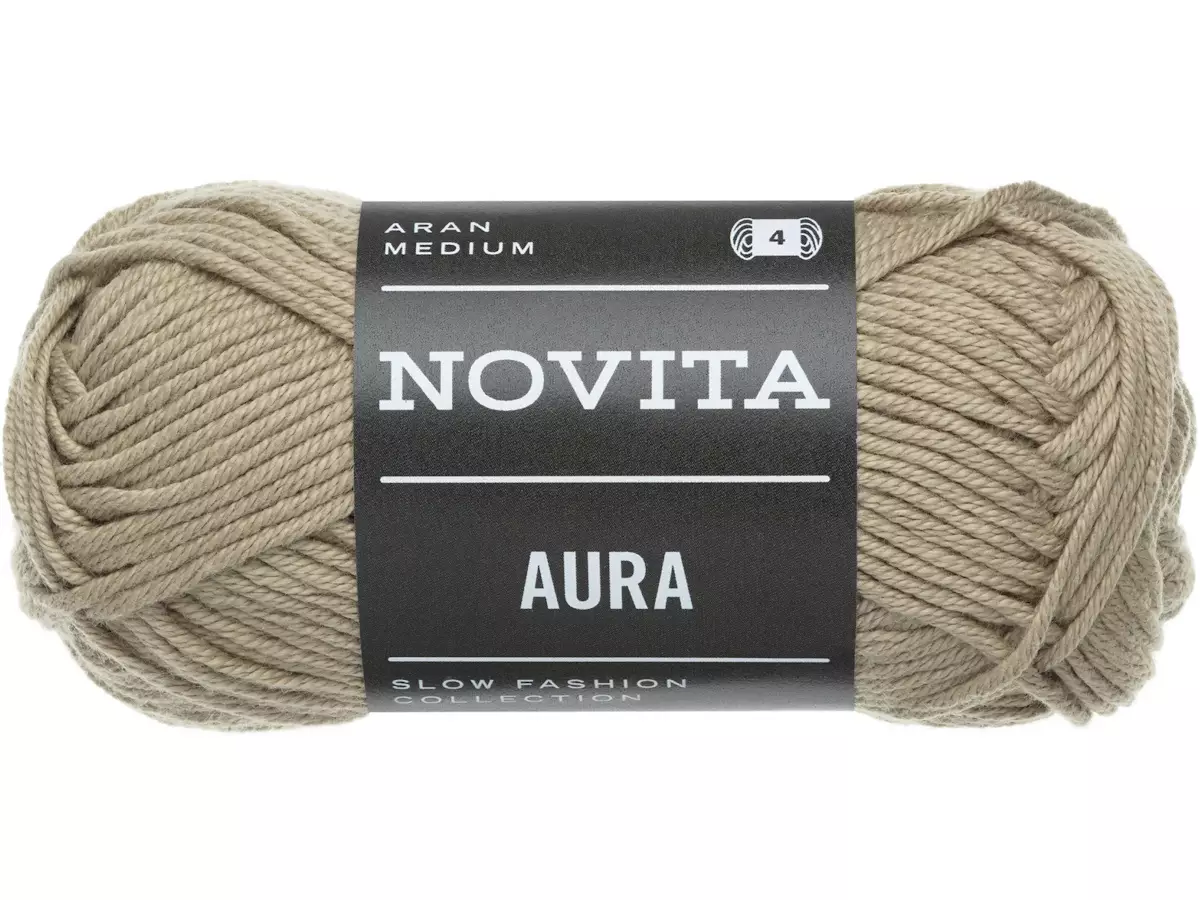 Novita Aura on 100 % puuvillalanka, joka sopii monipuolisesti sekä virkkaukseen että neulontaan. Napakasta puuvillalangasta valmistuu nopeasti sekä sisustustuotteet että asusteet, kuten virkatut kassit ja hatut. Paksu puuvillalanka sopii etenkin aloitteleville virkkaajille. Aura -langasta tehdyt tuotteet voidaan konepestä 40 asteessa ja sen valmistukselle on myönnetty Oeko-tex® STANDARD 100 -tuoteturvallisuusmerkki. 50 gramman kerässä on 80 metriä lankaa. Puikko- ja koukkusuositus langalle on 4–5.
