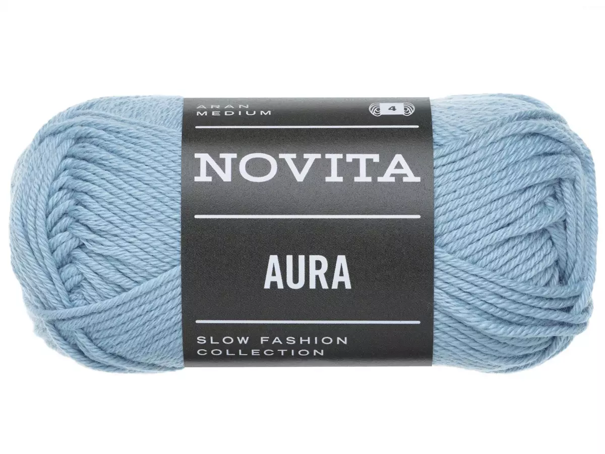 Novita Aura on 100 % puuvillalanka, joka sopii monipuolisesti sekä virkkaukseen että neulontaan. Napakasta puuvillalangasta valmistuu nopeasti sekä sisustustuotteet että asusteet, kuten virkatut kassit ja hatut. Paksu puuvillalanka sopii etenkin aloitteleville virkkaajille. Aura -langasta tehdyt tuotteet voidaan konepestä 40 asteessa ja sen valmistukselle on myönnetty Oeko-tex® STANDARD 100 -tuoteturvallisuusmerkki. 50 gramman kerässä on 80 metriä lankaa. Puikko- ja koukkusuositus langalle on 4–5.