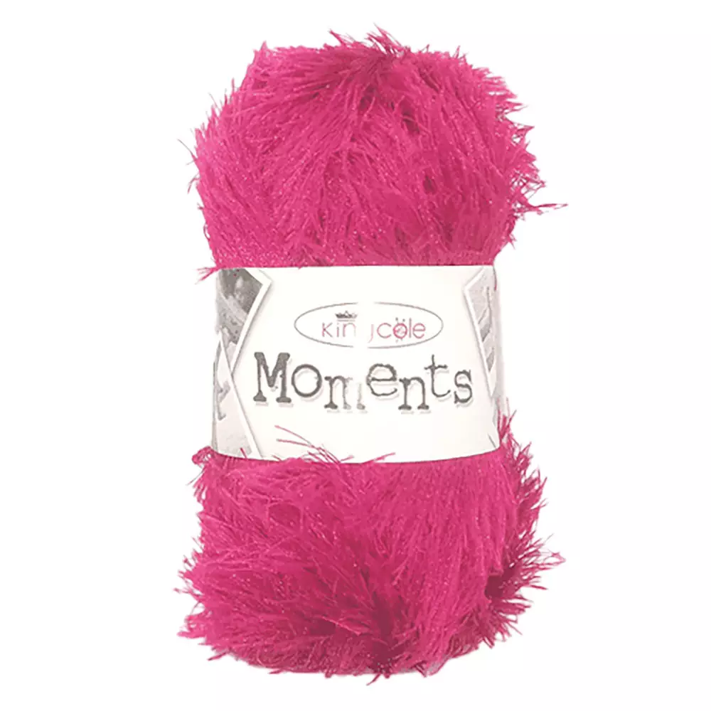 King Cole Moments on pehmeä ja pörröinen lanka, joka on täydellinen valinta näyttäviin neuleisiin ja asusteisiin. Se sopii käytettäväksi sellaisenaan tai yhdistettynä muihin lankoihin tuomaan ilmettä ja rakennetta. Lanka toimii erinomaisesti esimerkiksi huiveissa, pipoissa, kaulureissa ja neuleiden yksityiskohdissa, ja sen avulla saat helposti luotua pehmeän ja ylellisen vaikutelman. Laadukas polyesterilanka kestää konepesua, joten valmiit työt ovat helppohoitoisia ja pitkäikäisiä. Moments-langan laaja värivalikoima tarjoaa vaihtoehtoja kirkkaista sävyistä hillitympiin, mikä tekee siitä monipuolisen valinnan luoviin projekteihin.