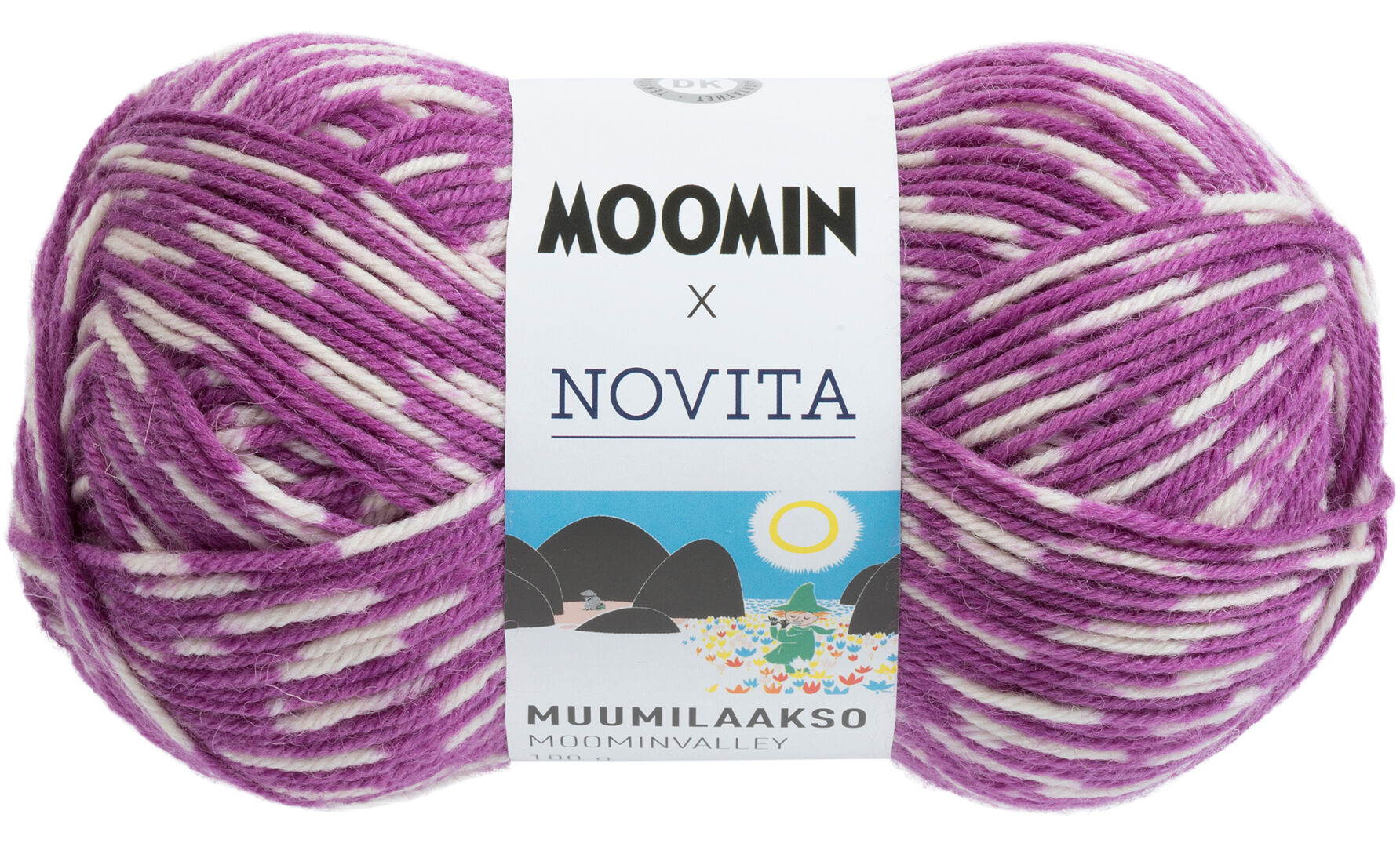 Novita Muumilaakso -lanka on yksi kolmesta Moomin x Novita -malliston tuotteesta.