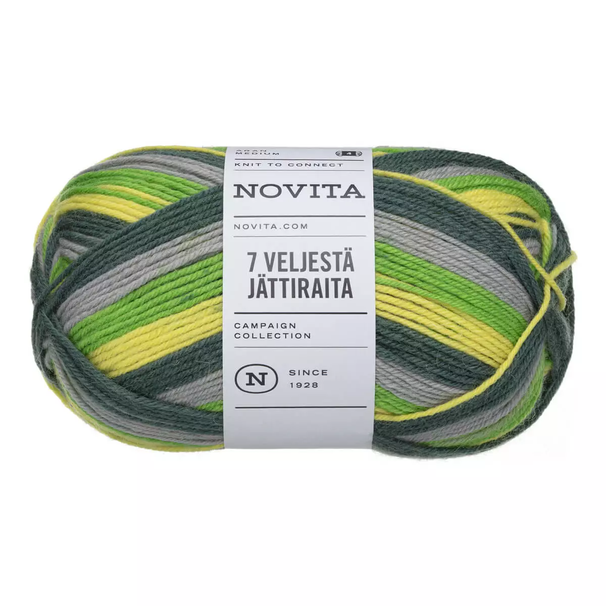 Novita 7 Veljestä Jättiraita on monivärinen sukkalanka, joka muodostaa neulottaessa näyttävät tasaraitaiset sukat ilman kerän vaihtamista. Lanka tekee neulomisesta helppoa, sillä raidat muodostuvat automaattisesti työn edetessä. Jättiraita-langasta syntyy paksuja ja näyttäviä palkkiraitoja upeissa väriyhdistelmissä. Lanka soveltuu erityisesti sukkien neulomiseen, mutta sitä voi käyttää myös esimerkiksi lapasiin, pipoihin ja muihin neuleisiin.
