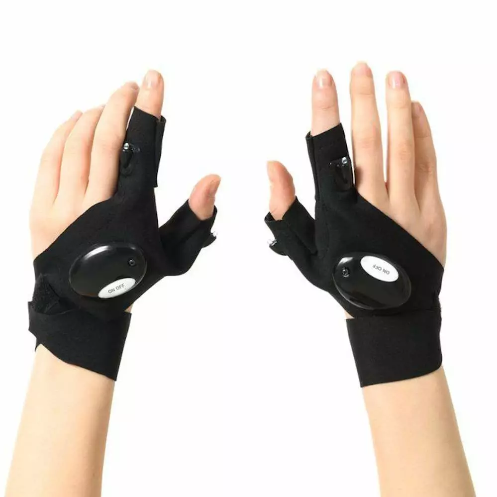 Nämä käsineet ovat kätevät retkeillessä, kalastaessa, autoissa ja muissa ahtaissa paikoissa työskentelyssä ja kaikkialla siellä missä tarvitaan valoa, mutta ei ole mahdollista pidellä taskulamppua. Hansikkaissa on 2 LED-valoa etusormessa ja peukalossa, ne on helppo suunnata sinne missä tarvitset valoa.