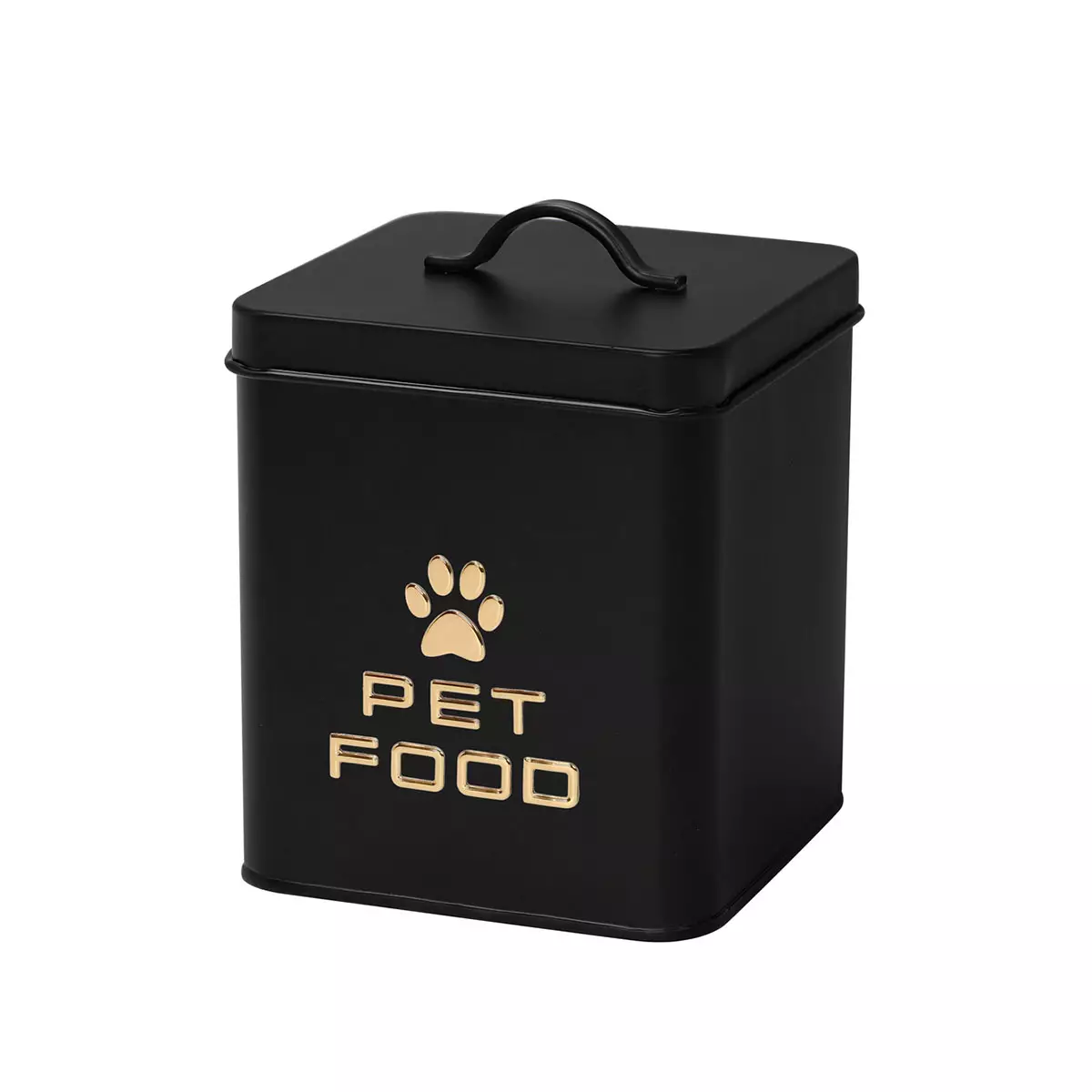 4Living Lemmikin ruokalaatikko Tassu musta kultaisella logolla 14,5 x 14,5 x 18,5 cm