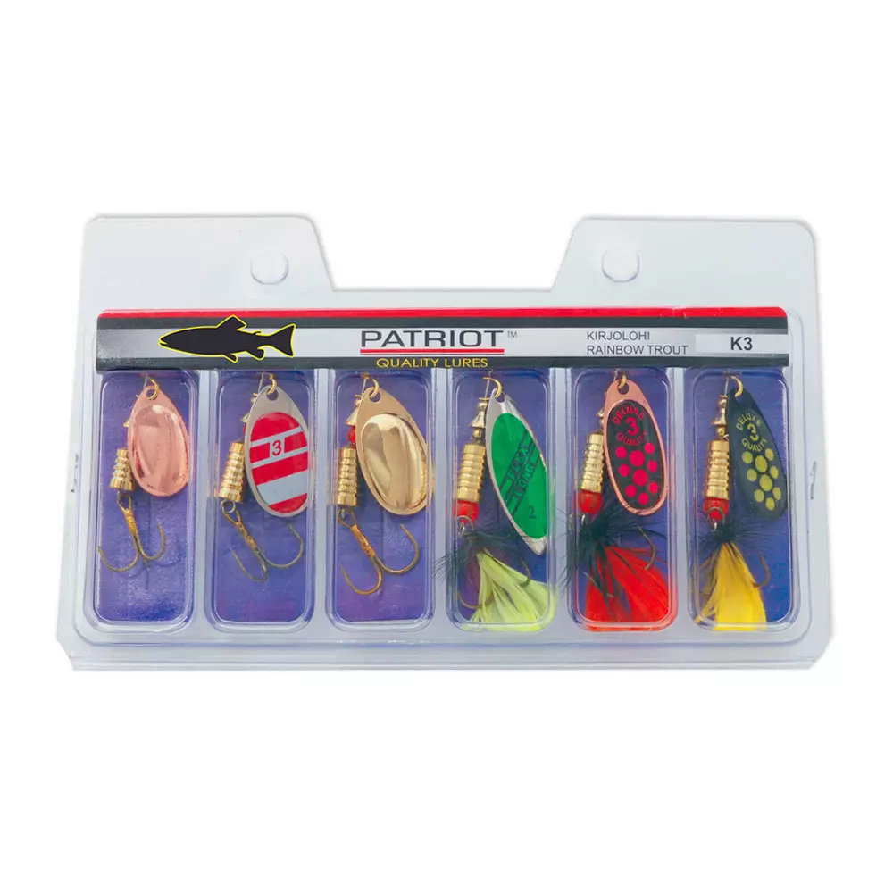 Patriot lippalajitelma tarjoaa monipuolisen valikoiman tehokkaita vieheitä erityisesti kirjolohen kalastukseen. Eri värit ja mallit mahdollistavat oikean vieheen valinnan vaihteleviin olosuhteisiin, joten setti sopii niin aloittelijoille kuin kokeneemmillekin kalastajille.