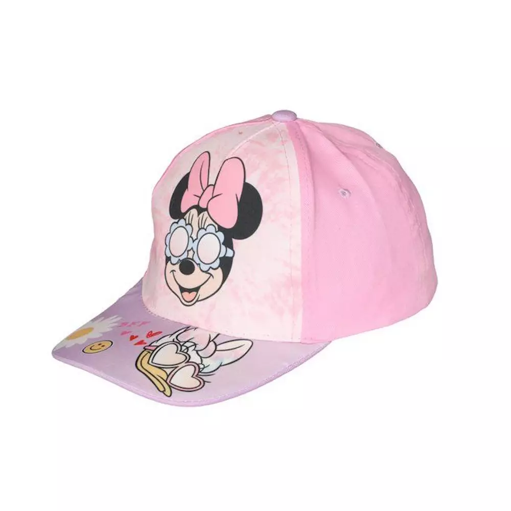 Minni Hiiri-lippis suojaa päätä ja kasvoja auringonpaisteelta. Takana tarranauhasäätö.