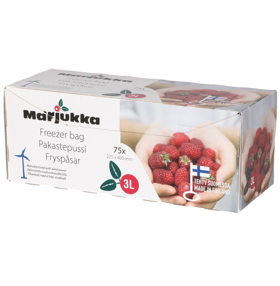 75 kpl/rulla. Pussin koko: 225 x 400 mm. Käyttölämpötila: -40 - +70 astetta. Valmistettu Suomessa.