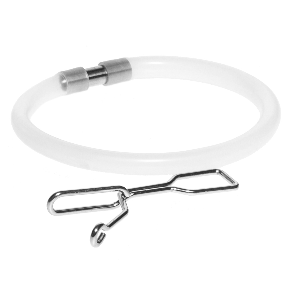 Elintarvikekelpoinen letku mehustimeen 220158 (Marjukka Mehustin 8 L) sekä letkunpuristin.