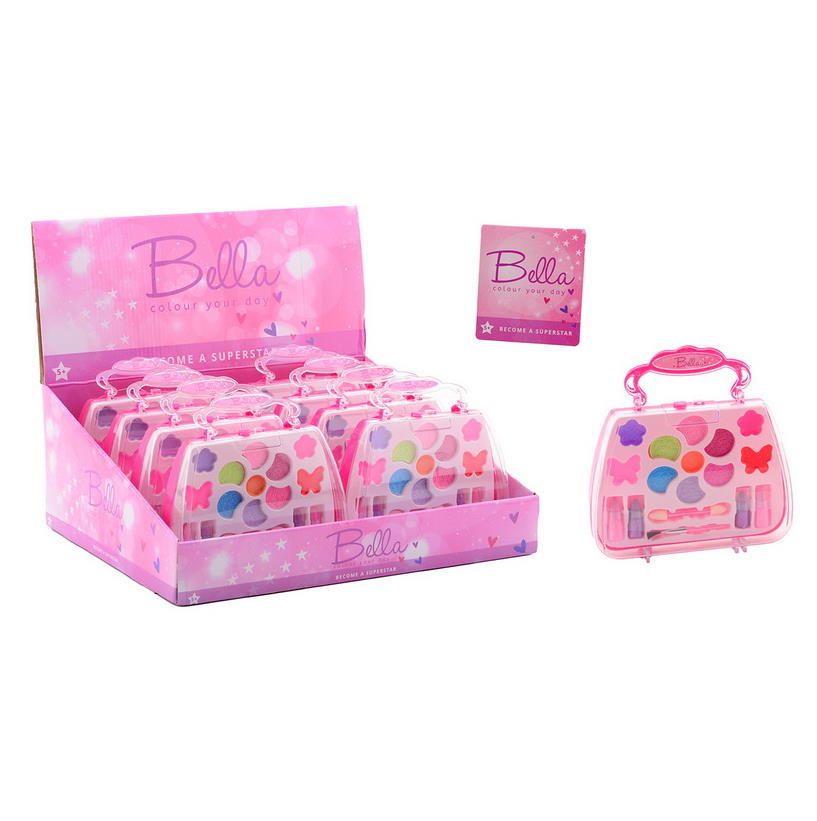 Loihdi upea leikkimeikki Bella meikeillä! Meikkisalkku sisältää huulipunia, huulikiiltoa, luomiväriä ja poskipunaa sekä kaksi meikkisivellintä. Peseytyy pois vedellä ja tarvittaessa miedolla pesunesteellä. Merkki: Bella. Tuotteen mittatiedot: 15 x 16 x 4 cm- 0,093 kg.