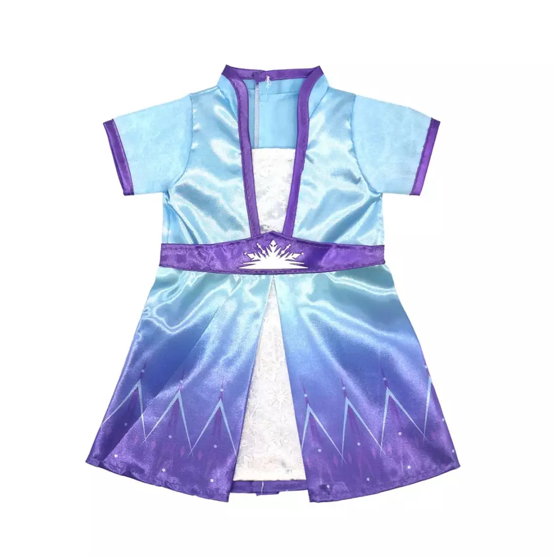 Juhlaviin hetkiin kaunis sininen jääprinsessan mekko vauvanukellesi. Hohtava kangas, violetit reunukset ja lumihiutalekuvioidut yksityiskohdat tekevät asusta näyttävän. Mekossa on kiinnitys takana ja se sopii 35–43 cm kokoisille nukeille. Täydellinen valinta nuken pukeutumisleikkeihin ja juhlahetkiin.