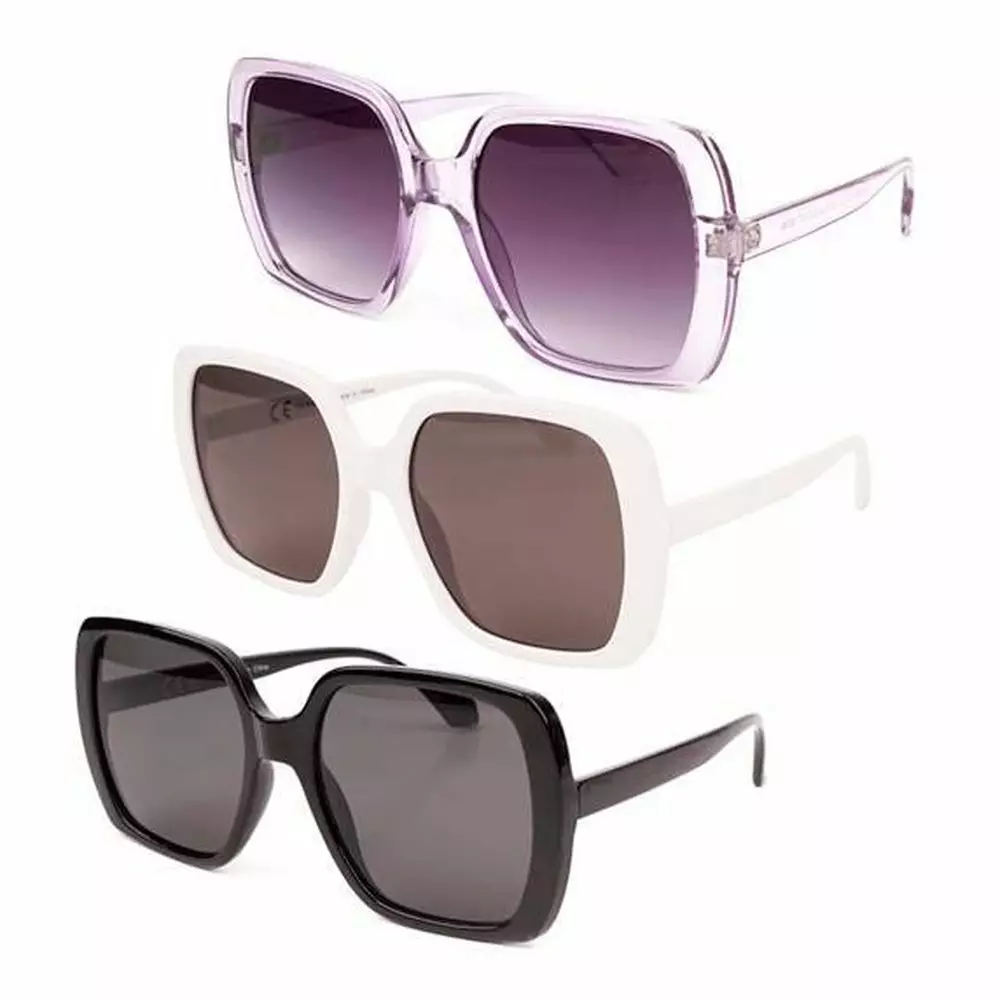 Aurinkolasit suojaavat silmiä kirkkaalta auringonvalolta ja häikäisyltä. Suuri ja kulmikas kehysmalli tuo tyyliin näyttävyyttä ja sopii hyvin monenlaisiin asukokonaisuuksiin. Kevyet muovikehykset tekevät laseista mukavat käyttää arjessa, matkalla tai kesäisessä ulkoilussa.