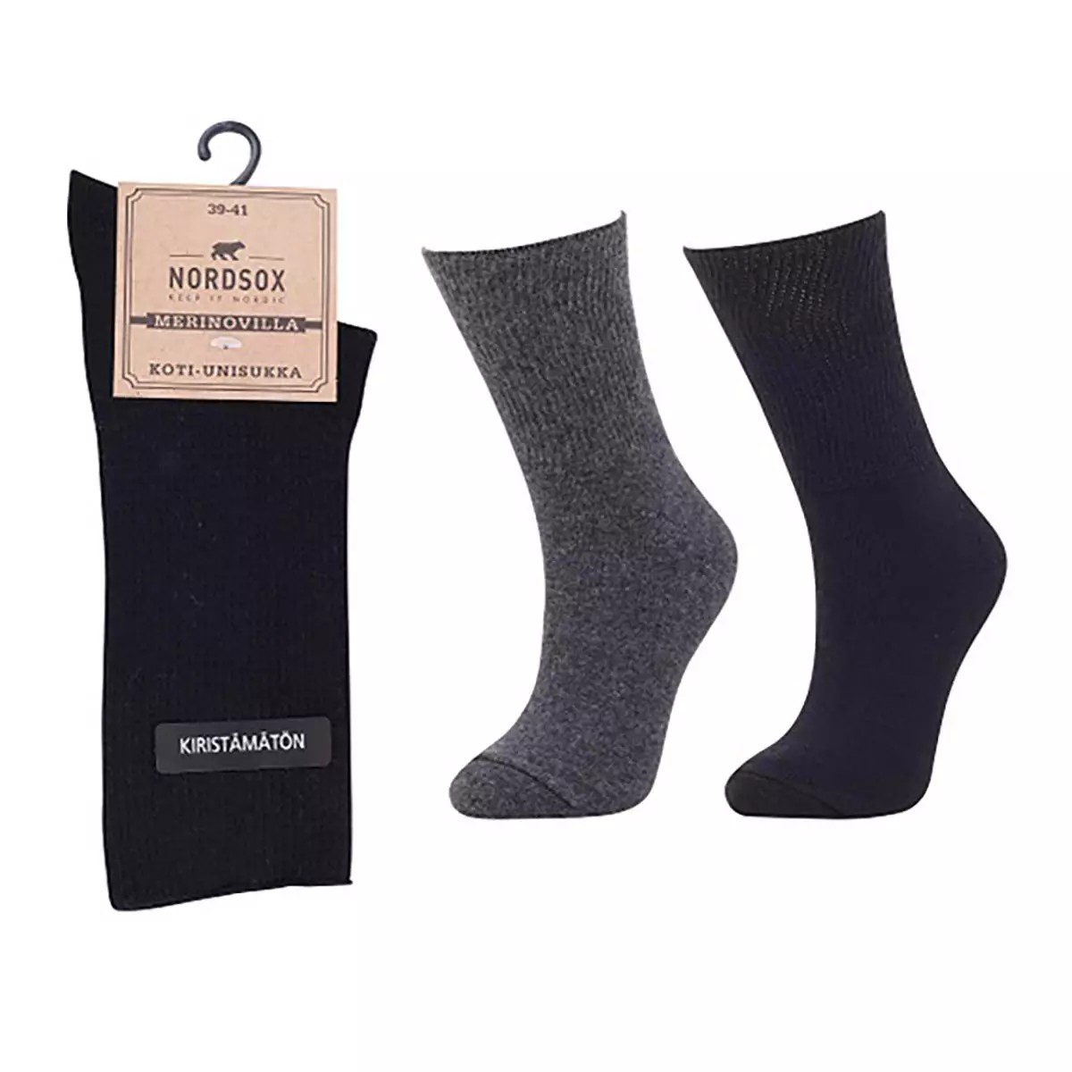 Nordsox merinovillasukat ovat pehmeät ja lämpimät sukat kotikäyttöön ja yöksi. Kiristämätön varsi tekee niistä miellyttävät jaloissa ja sopivat erityisesti niille, jotka arvostavat mukavuutta ja hengittävyyttä. Merinovilla lämmittää luonnostaan ja siirtää kosteutta tehokkaasti pitäen jalat kuivina ja lämpiminä.