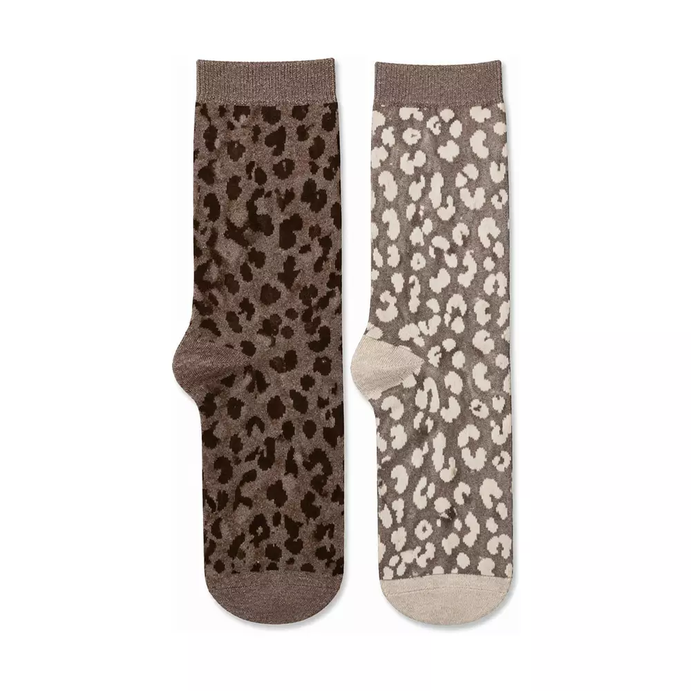 Nilkkasukat leopardi-kuosilla tuovat ilmettä pukeutumiseen. Mukava materiaali sopii päivittäiseen käyttöön, ja malli toimii hyvin monenlaisten kenkien kanssa.