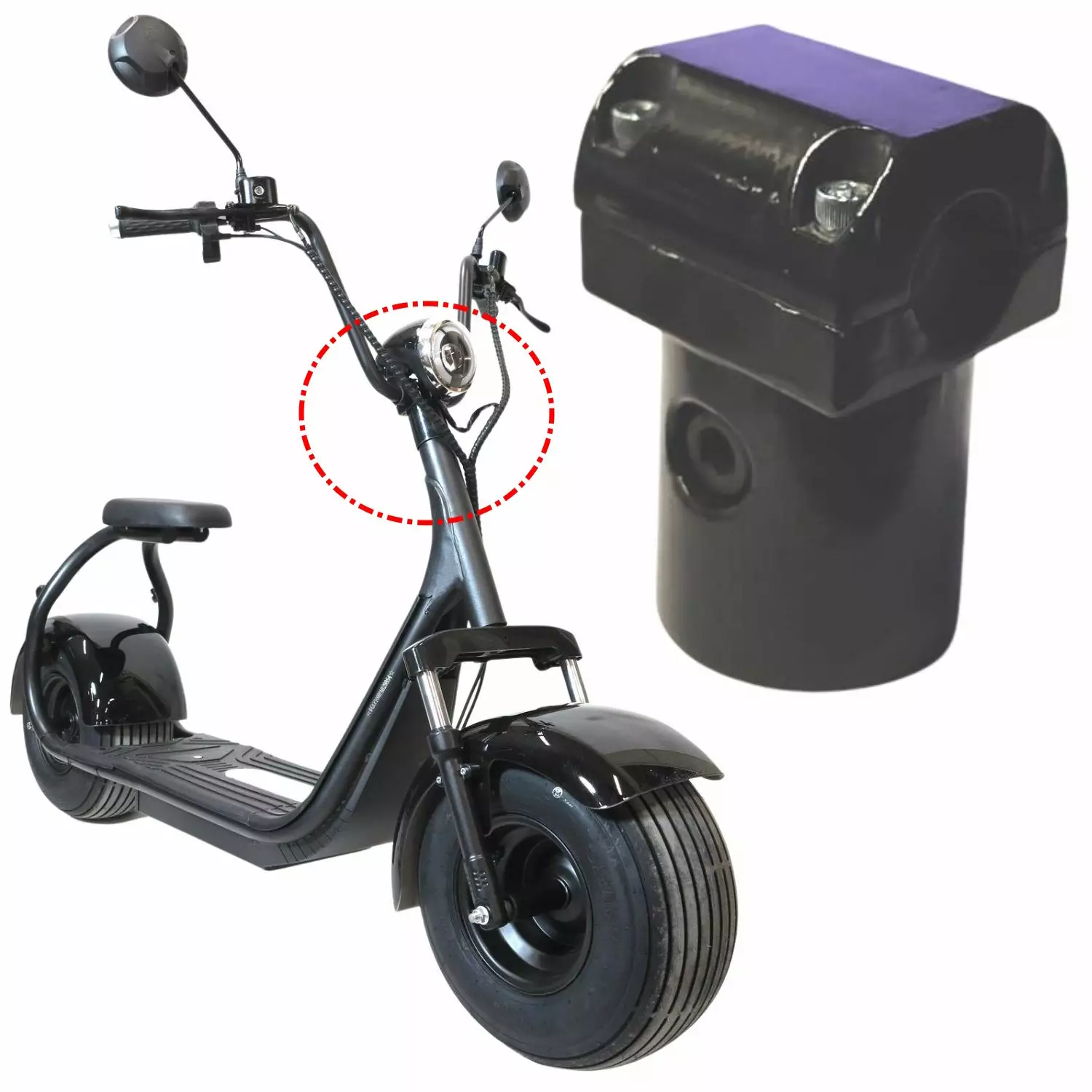 Alkuperäinen tehdasosa. Yleimallinen kiinnike sähköskootterin ohjaustangolle. Sopii suoraan YHZ Classic sarjan sähköskoottereihin.