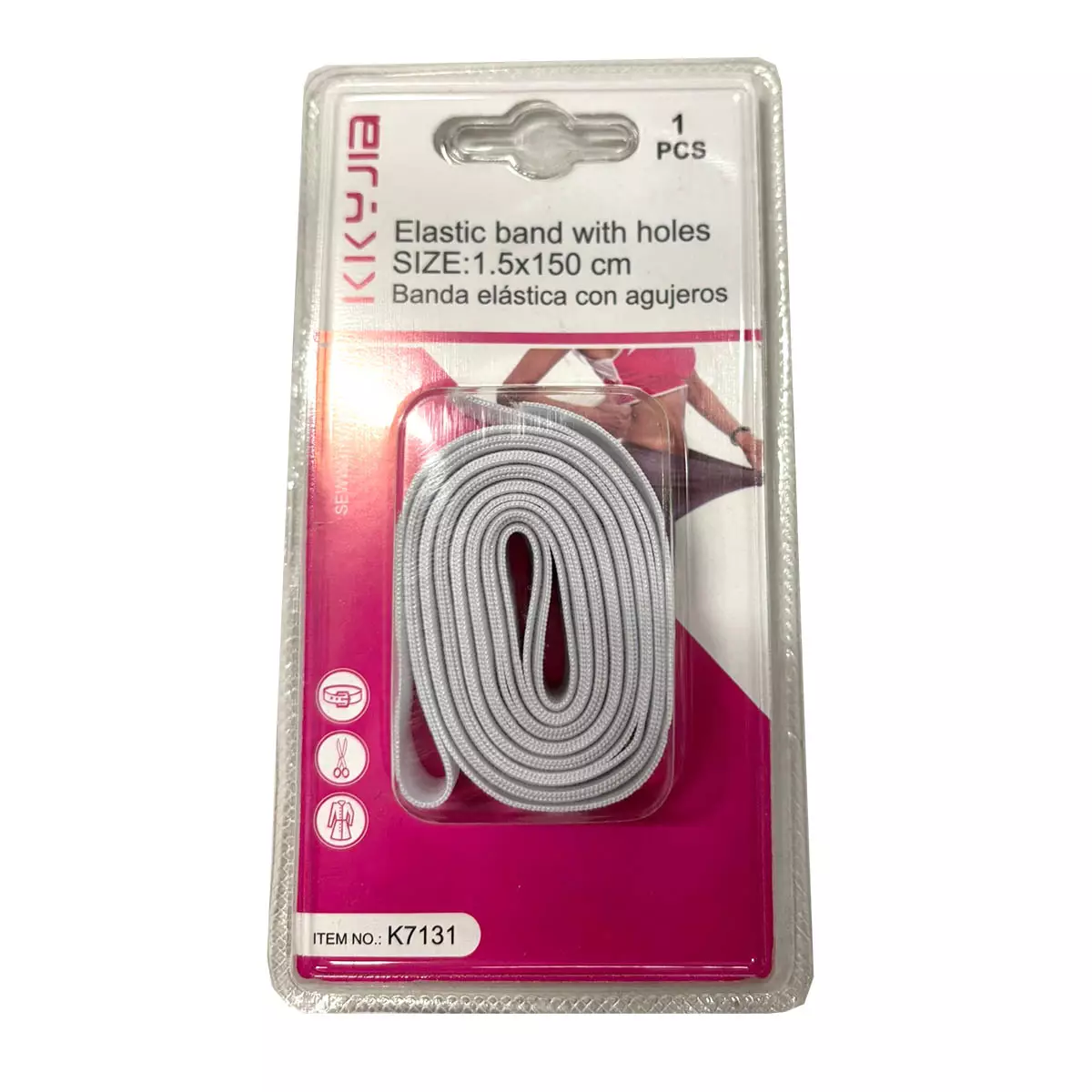 Valkoinen ommeltava kuminauha, koko 2 cm x 150 cm. Sopii erinomaisesti vaatteiden, asusteiden ja erilaisten käsitöiden viimeistelyyn. Joustava ja kestävä materiaali tekee siitä monipuolisen valinnan esimerkiksi vyötärönauhoihin, hameisiin, housuihin ja muihin ompeluprojekteihin.