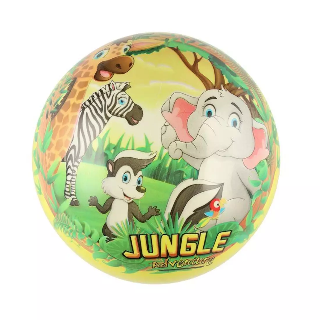 Upean värikäs pallo suloisella viidakkokuvalla. Kestävä pallo kesän leikkeihin. Pallon halkaisija 23 cm.