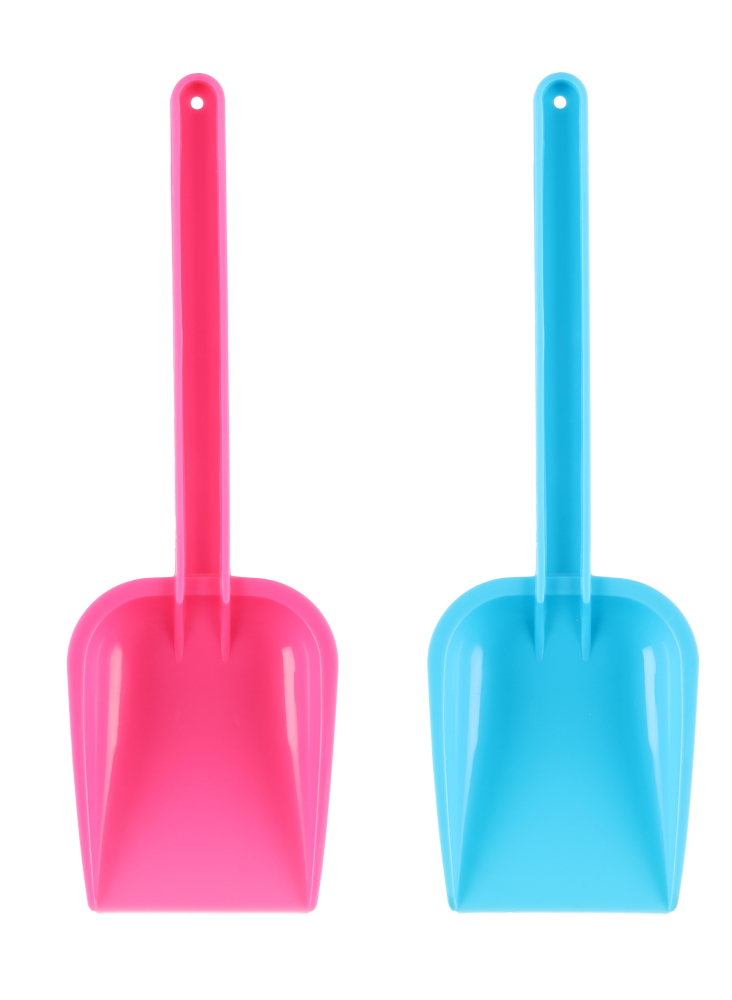 Värikkäitä hiekkalapioita lapsille. Saatavilla vaaleansinisenä ja vaaleanpunaisena.