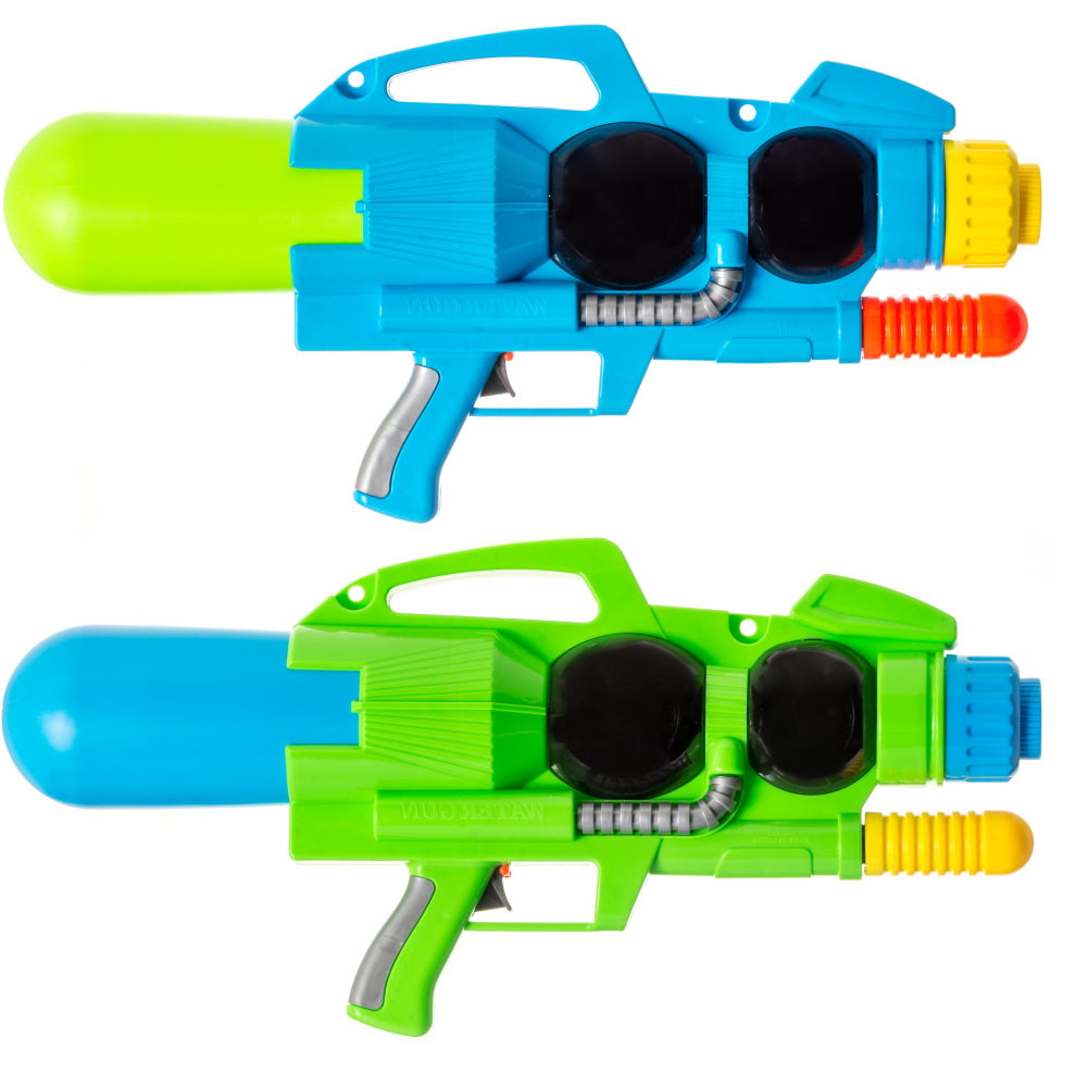 Värikäs lajitelma vesipyssyjä saatavilla sinisenä ja vihreänä.