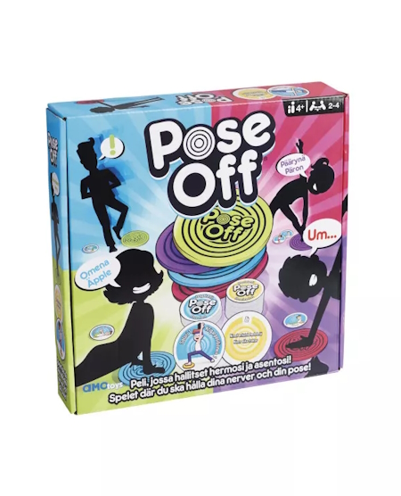 Pose Off pelin opit nopeasti ja sitä on riemastuttava pelata – pelissä tehdään jooga-asentoja ja annetaan samalla vastauksia kysymyksiin! Pidä jooga-asento värikkäällä matollasi ja anna samalla vuorollasi vastauksesi haasteen kysymykseen. Mutta varo, jos toistat jo annetun vastauksen, et pysty pitämään asentoasi tai poistut matolta – olet hävinnyt tämän kierroksen! Pystytkö pitämään hermosi ja asentosi? Kerää ensimmäisenä 3 korttia ja olet voittaja! 2 -4 pelaajalle 4-vuotiaista alkaen.