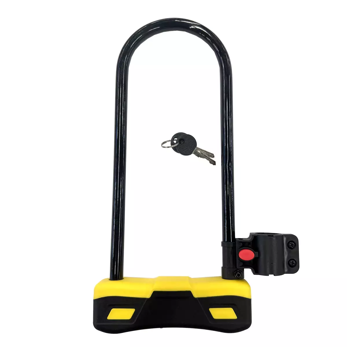 Vankka L-kokoinen U-lukko tarjoaa luotettavaa suojaa polkupyörällesi. Pitkä 300 mm korkeus helpottaa kiinnittämistä erilaisiin telineisiin, tolppiin ja runkorakenteisiin. Mukana toimitettava pyörään asennettava teline tekee lukon kuljettamisesta helppoa ja pitää sen tukevasti mukana ajon aikana. Lukko toimitetaan kahdella avaimella.