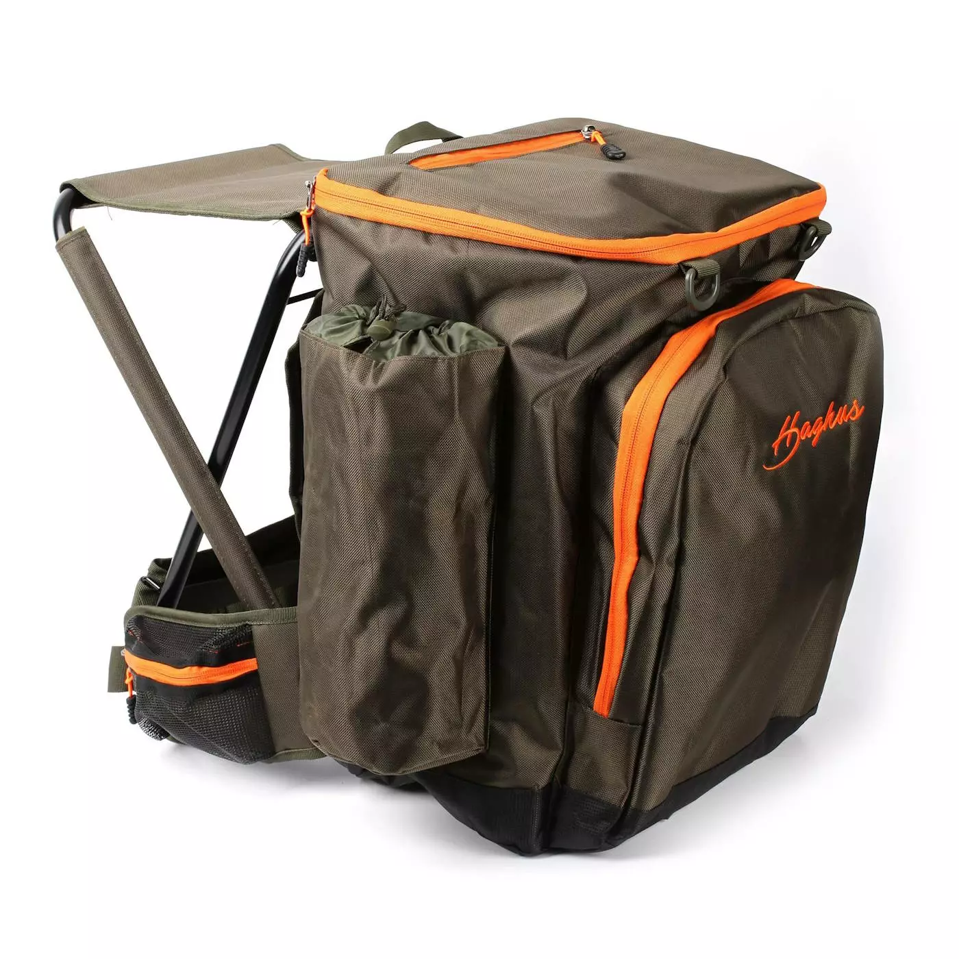 Repun 40 litran päätaskun lisäksi löytyy myös useita lisätaskuja, yksi niistä on "Thermo System" -lämpöeristetty pullotasku, jonka avulla saat termospullossa olevan kuuman juoman tai ruuan pidettyä vielä vähän pidempään lämpimänä. Muita taskuja repusta löytyy useita mm. pilkkivavoille, retkikirveelle ja eväille. Isoon etutaskuun mahtuu esimerkiksi Haghus retkikeitin. Vedenpitävä pohja tekee tästä mainion repun myös pilkille jahtireissujen lisäksi.