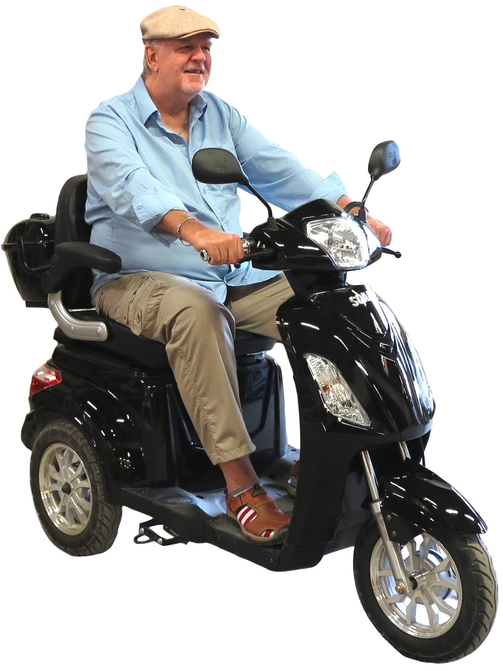 Tukeva ja turvallinen sekä vauhdikkaasti kulkeva 3-pyöräinen senioriskootteri vaikka kauppareissuille tai muutenvain paikasta toiseen liikkumiseen kulkuneuvoksi. Scandic-senioriskootterissa on vakiona kaatumisenesto. Scandic-senioriskootterin nopeus on rajoitettu 25km/h, jolla taitat reippaasti jopa 55km pituisen matkan joutuisasti yhdellä latauksella. Tarkoitettu yksinomaan liikuntarajoitteisten käyttöön.