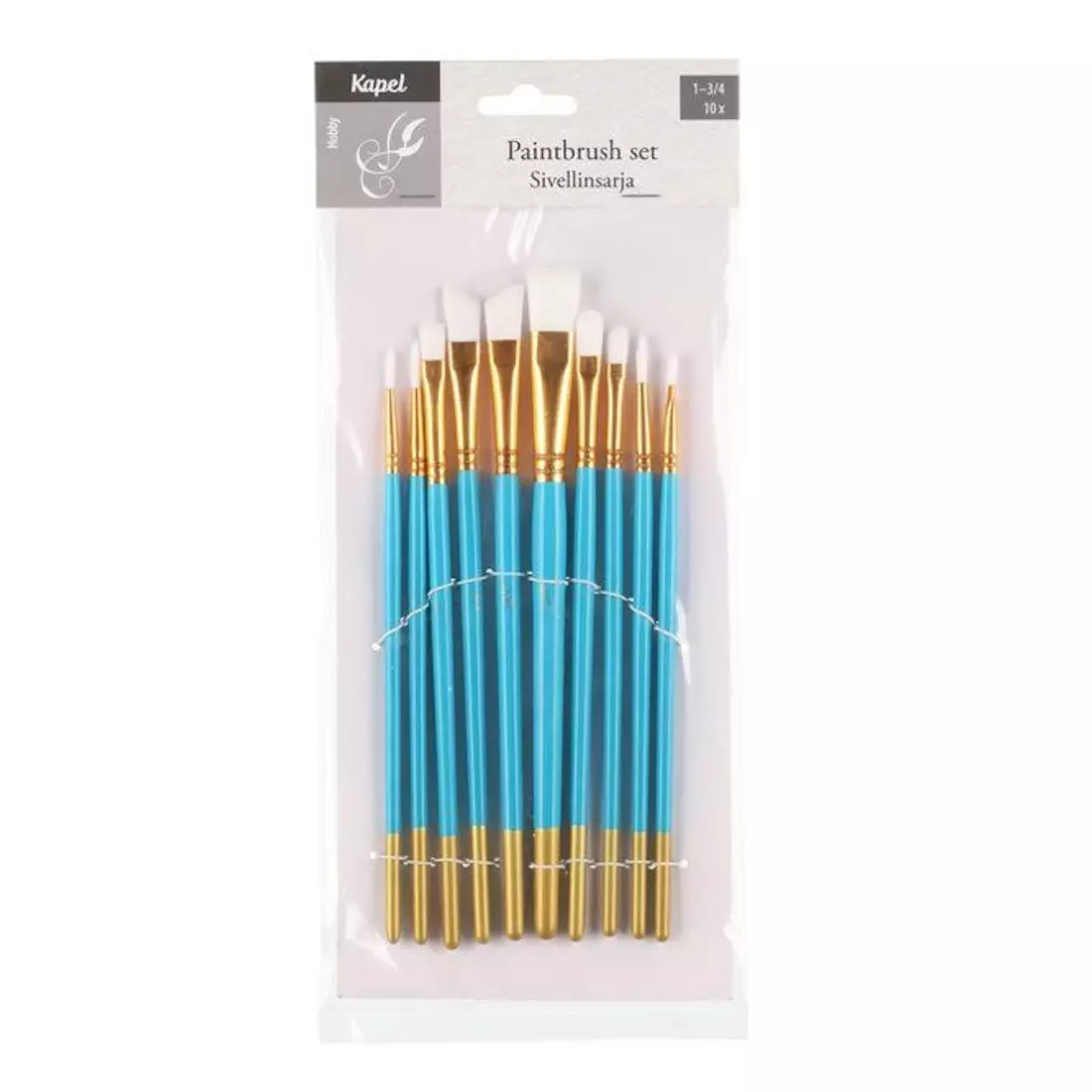 Monipuolinen sivellinsarja akryylimaalaukseen. Sisältää 10 kpl eri kokoisia nylonharjaksisia siveltimiä. Koot alk.1-3/4. Pakkauksessa pyöreä-, litteä- ja viistopäisiä siveltimiä.