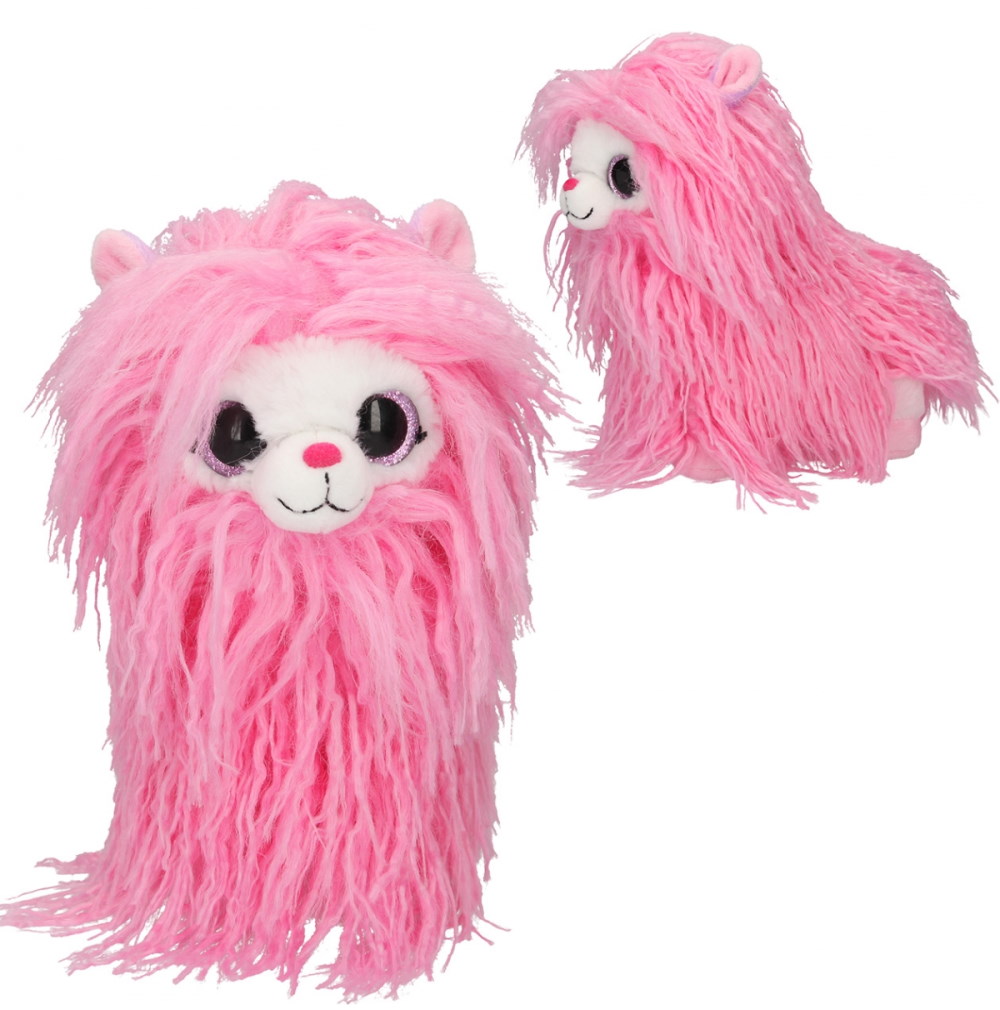 Pinkin värinen suloinen laamapehmo, jolla pitkä ja pehmeä turkki. Korkeus 21cm.