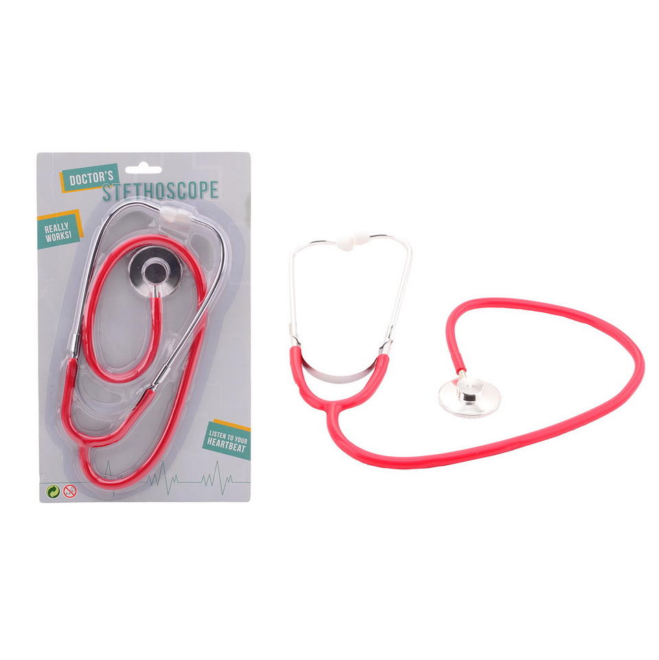 Metallinen stetoskooppi. Lääkärileikkeihin takuuvarma aitouden lisääjä. Pakkauksen koko: 18 x 29 cm. Ikäsuositus 3+ vuotta.