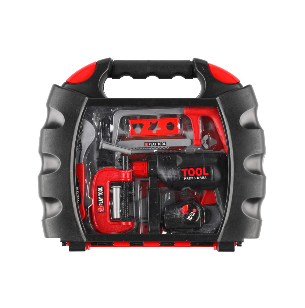 29-osainen työkalusetti jossa mukana 22 cm pora pyörivällä terällä, mittanauha 1 m, saha liikuteltavalla terällä, jakoavain, puristin, vasara ja paljon muita osia. Ikäsuositus 3+.