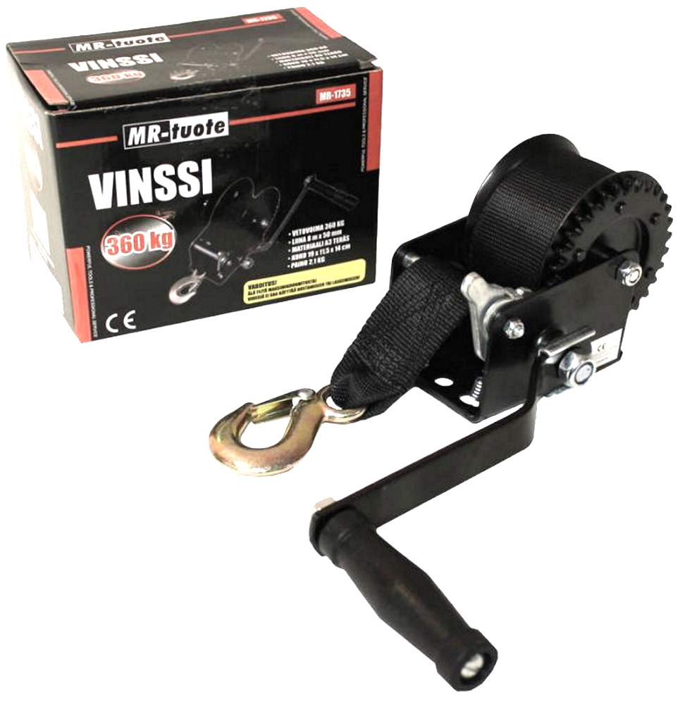 Vinssi liinalla 50 mm x 8 m, 360 kg Vetovoima 360 kg Liina 8 m x 50 mm Materiaali A3 teräs Koko 19 x 11,5 x 14 cm Paino 2,1 kg