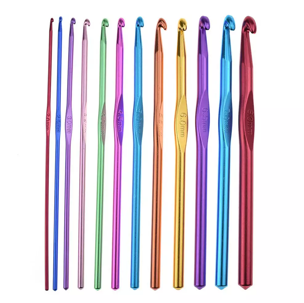 Monipuolinen setti värikkäitä alumiinisia virkkuukoukkuja, koot 2 mm - 8 mm. Koukkujen keveys ja sileä pinta tekevät virkkaamisesta miellyttävää ja ne soveltuvat erinomaisesti niin ohuemmille langoille kuin paksummillekin materiaaleille. Eri kokoiset koukut tarjoavat mahdollisuuden monenlaisiin projekteihin aina pienistä koristeista suuriin käsitöihin. Pakkaus sisältää 12 erikokoista virkkuukoukkua.